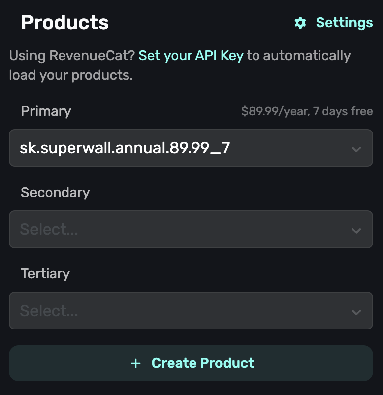In this section, you choose your products to display on your paywall. You'll need to set up your products via Settings as detailed here.